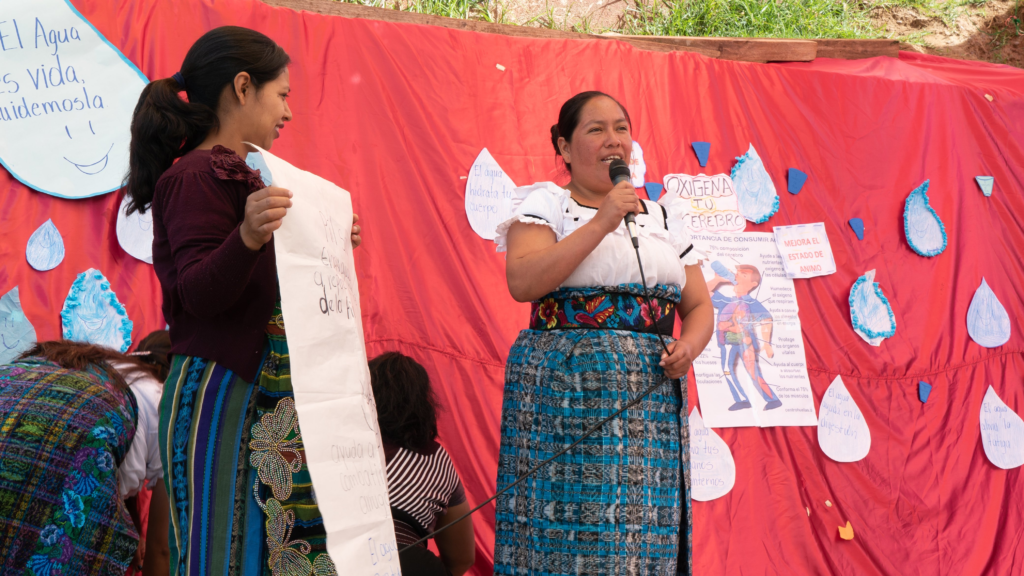 A lack of safe drinking water (98% of the water supply in Guatemala is contaminated) and easy access to cheap, sugary beverages means many families in rural Guatemala do not drink nearly enough water. Students, mother leaders, and teachers in MM partner communities came together to spread this important message and help develop the healthy habit of drinking purified water every day. Thanks to our partners at Water Charity, each of our partner schools and many mother leaders in our communities have filters that provide children with clean drinking water.